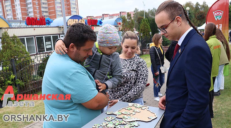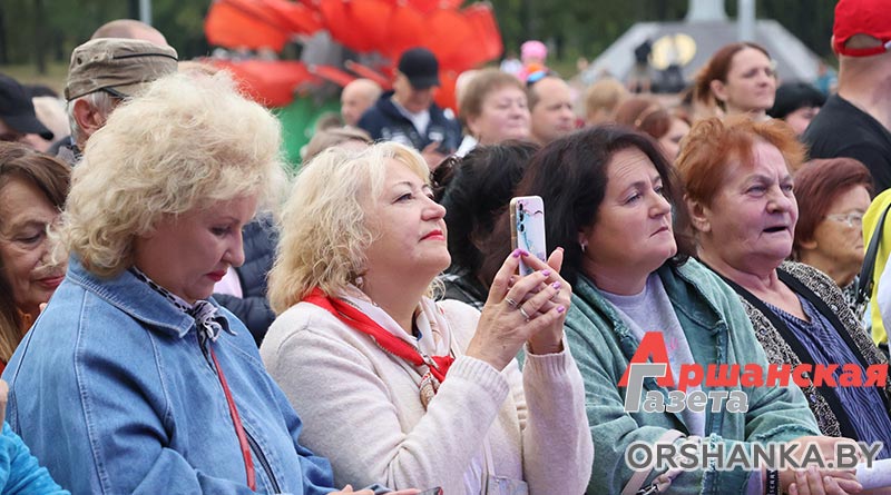 Настроение празднику придает насыщенная концертная программа с участием творческих коллективов Оршанщины. Яркие выступления, народные и современные песни в исполнении артистов района создают атмосферу единства и вдохновляют зрителей – многие не сдерживаются и с радостью пускаются в пляс.