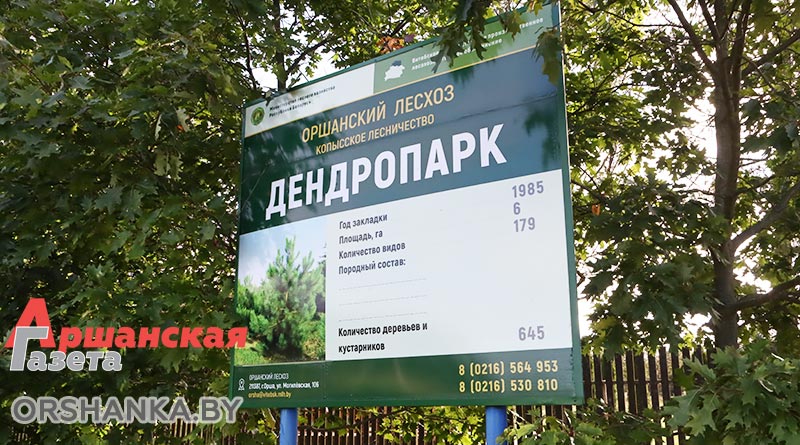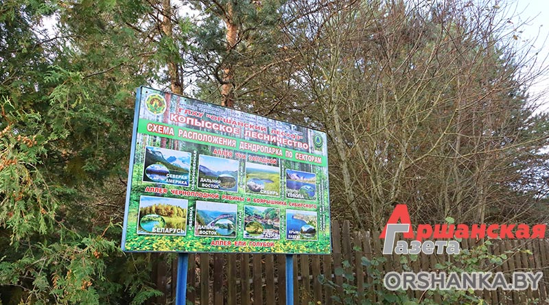 Но вот в местный дендропарк, что называется, народная тропа вряд ли зарастет. Желающих посетить эту жемчужину Копысской земли с каждым годом становится всё больше и больше. Популярность этой экологически чистой территории обусловлена еще тем, что она является памятником природы местного значения. Дендропарк расположен на 6 гектарах земли и был заложен в 1988 году. Здесь произрастает 179 видов деревьев и кустарников. Многие из них весьма экзотические. Например, в дендропарке можно совершить своеобразное путешествие по странам мира, ведь каждая его секция представляет флору определенных регионов: Беларусь, Дальний Восток, Азия, Крым, Кавказ, Европа, Сибирь, Северная Америка. Здесь даже можно встретить целые аллеи туи, каштана, калины красной, рябины обыкновенной, ели колючей, березовую рощу. Численность деревьев и кустарников составляет более полутора тысяч и постоянно пополняется.