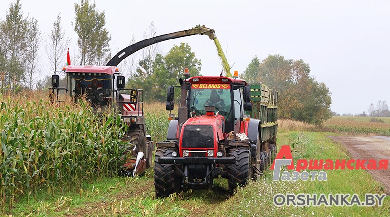 В хозяйстве в данный момент также ведется и уборка кукурузы. Площадь царицы полей под силос составляет 1 105 га, на зерно – 700 га.