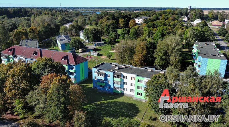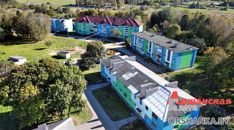 Давайте еще раз взглянем на основные объекты благоустройства: Базарную площадь, жилые дома, школу, детский сад, Дом культуры и прилегающую территорию и др., а также полюбуемся красивыми видами с высоты птичьего полета этого милого агрогородка Оршанского района.
