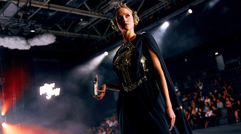 Наряды выглядели так, словно сошли с экранов эпических фильмов. Особое внимание привлекали аксессуары, созданные художницей и скульптором Ириной Ромбальской. Один из корсетов был украшен многочисленными причудливыми деталями, отсылающими в богатству декора эпохи барокко. Некоторые из них напоминали блок камер и форму корпуса флагманской модели.