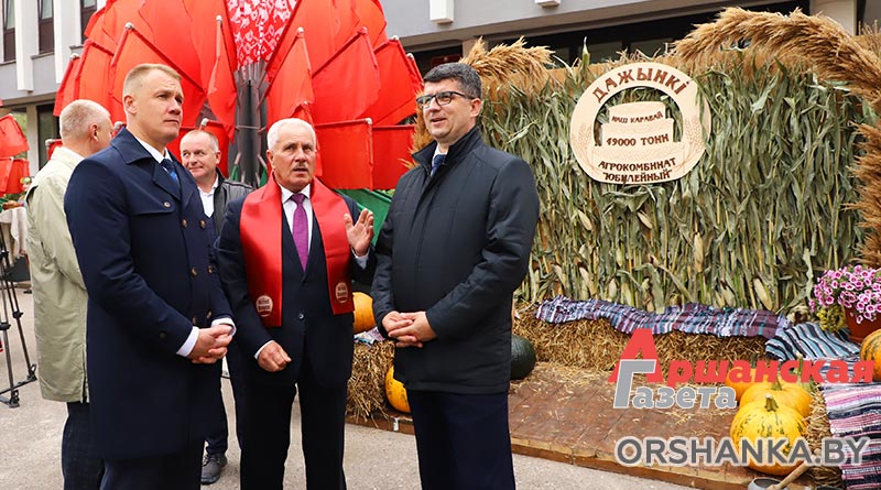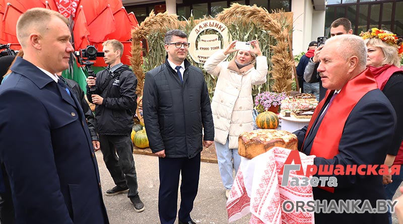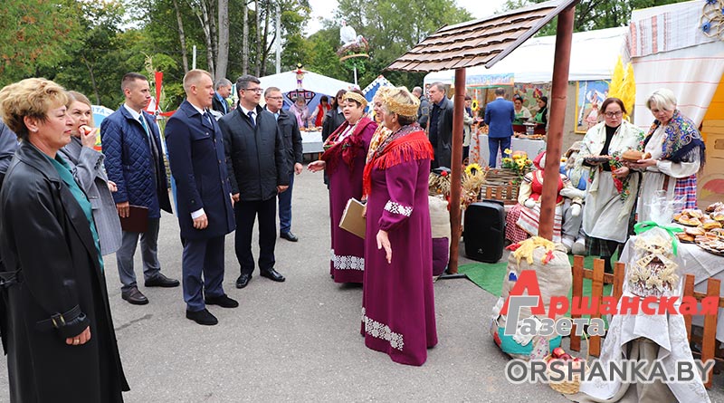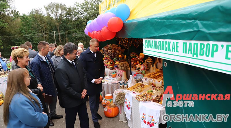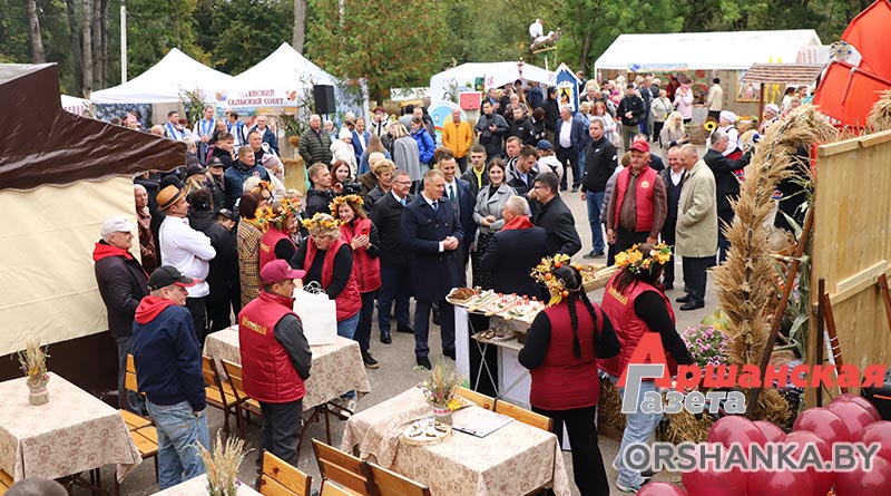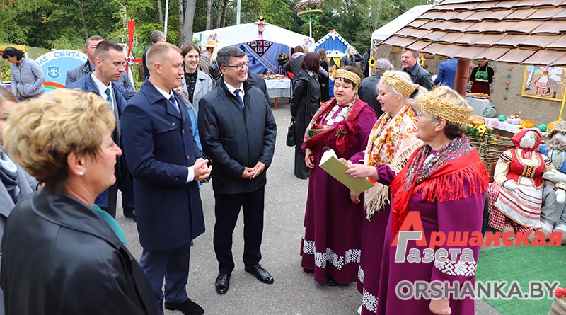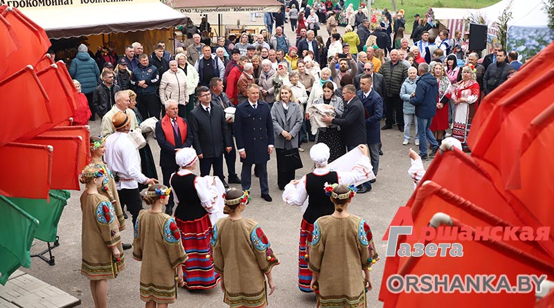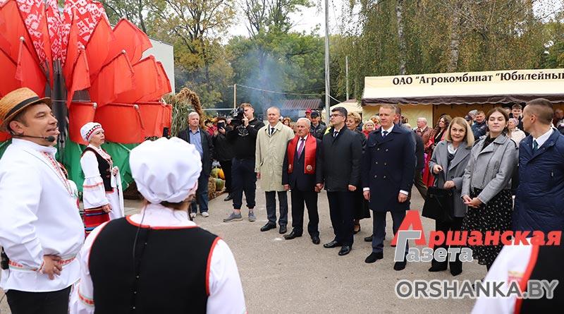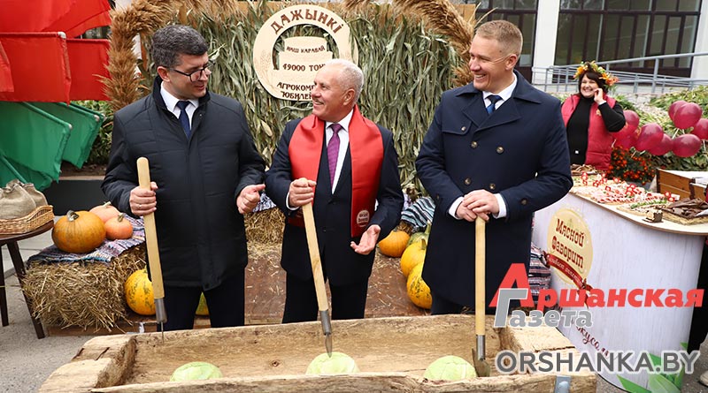 Возле обновленного Центра культуры развернулась работа подворьев сельских советов Оршанщины. Почетных гостей встречали с песнями и угощениями. А вот возле палатки агрокомбината “Юбилейный” директор предприятия Александр Фирсин предложил поучаствовать в старинном обряде первому зампреду облисполкома Сергею Левковичу и главе Оршанского района Игорю Морозу в капустной талаке. После гостей встретили караваями и пригласили принять участие в торжественной церемонии награждения тружеников села.