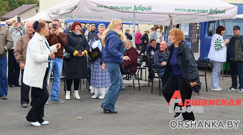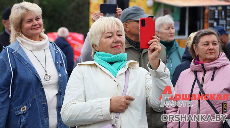 Для зрителей выступают творческие коллективы Оршанщины. Люди приходят целыми семьями. Многие с радостью пускаются в пляс под зажигательные мелодии.