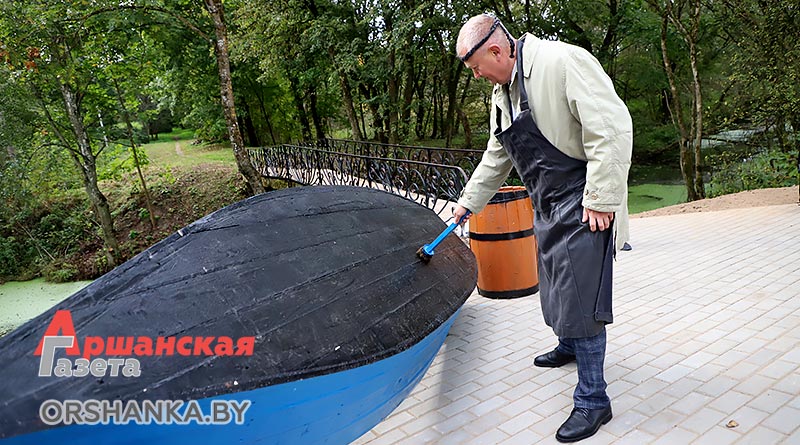 Подарком для жителей агрогородка стала необычная фотозона со смоляной бочкой и лодкой, которая разместилась возле моста через реку Дерновку. Локация быстро стала популярной, гости праздника сделали там немало фотографий.