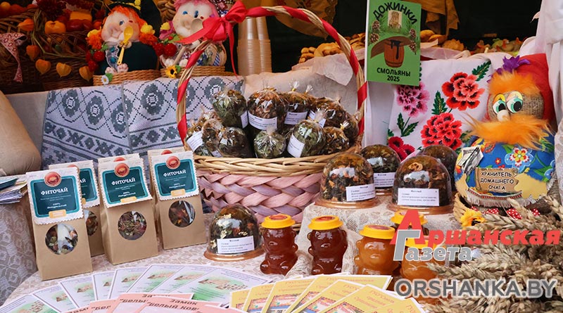 Самым ярким из них было подворье Смольянского сельского совета и Оршанского государственного аграрного колледжа. Гостей угостили чаем собственного производства, который изготавливают учащиеся колледжа. В составе каждого иван-чай и продукция, выращенная на участке учреждения – яблоки, айва, черноплодная рябина и другое.