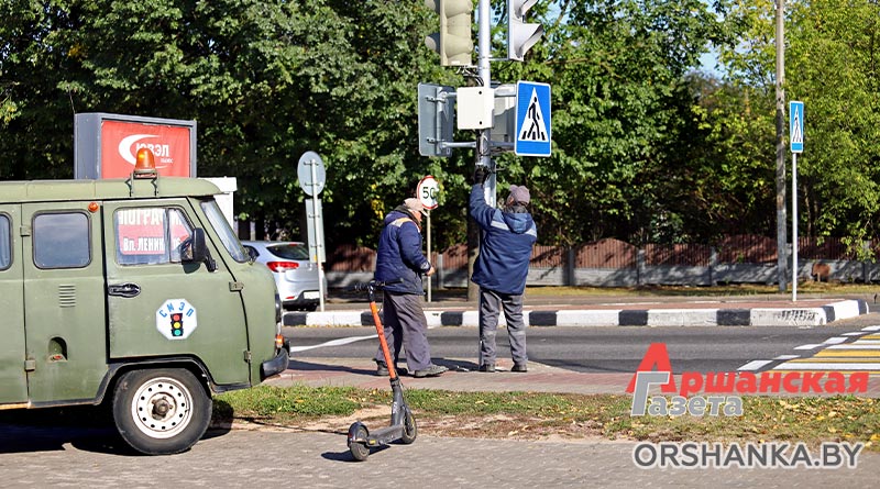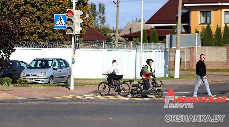 С 1 сентября этого года в новой редакции ПДД говорится, что перед пересечением проезжей части велосипедист и водитель средства персональной мобильности обязаны спешиваться. Проехать можно лишь в том случае, если есть светофор для регулирования движения велосипедистов. Как сообщили журналисту «Аршанскай газеты» в районном отделе ГАИ, в Орше таких светофоров нет. Однако Госавтоинспекцией разработана специальная табличка, регулирующая действия велосипедиста и пользователя СПМ на пешеходном переходе.