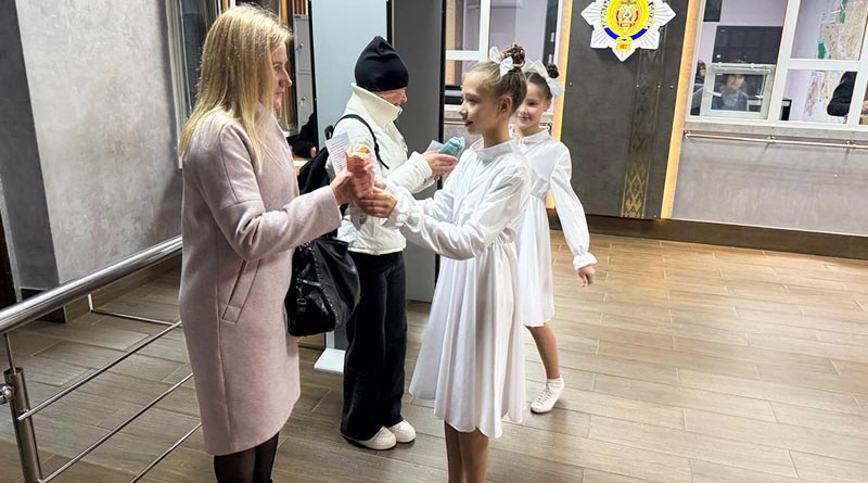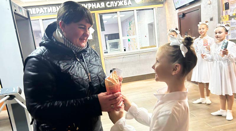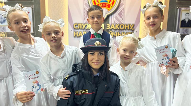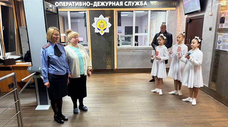 С Днем матери сотрудниц милиции поздравили дети. Они встречали женщин в фойе здания со сладкими подарками и теплыми пожеланиями.