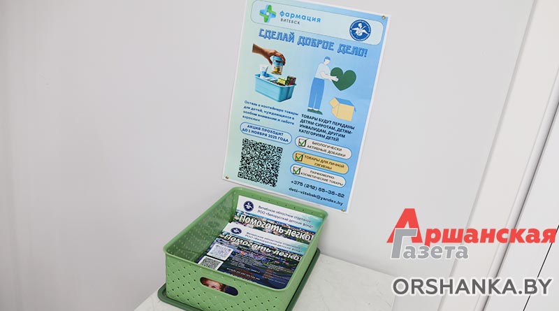 В Оршанском районе проходит благотворительная акция «Сделай доброе дело». Ее организаторами стали Белорусский детский фонд совместно с РУП «Фармация». Ее цель – поддержать детей, оказавшихся в трудной жизненной ситуации, и напомнить, что доброе дело начинается с небольшого, но искреннего участия каждого из нас.