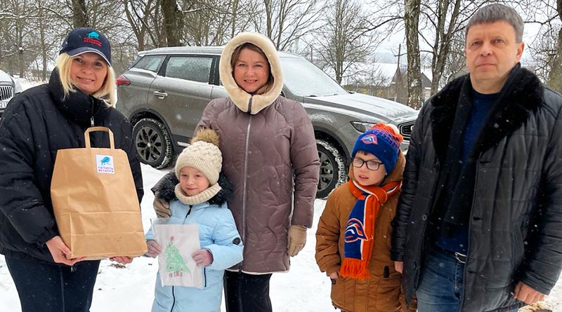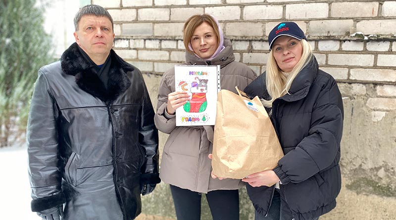 Приехали в гости не с пустыми руками, а привезли продукты первой необходимости, сладости к празднику, теплые носочки и предметы личной гигиены, а также зимние картинки и новогодние открытки, нарисованные учащимися.