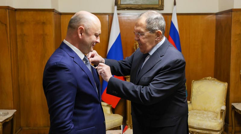 Сергей Лавров вручил Александру Рогожнику нагрудный знак «За вклад в международное сотрудничество»