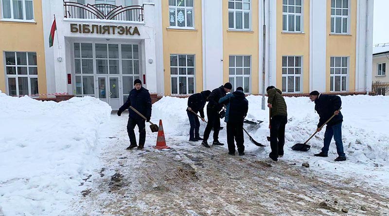 Завершилось мероприятие акцией по уборке снега вблизи Центральной библиотеки имени А. С. Пушкина.