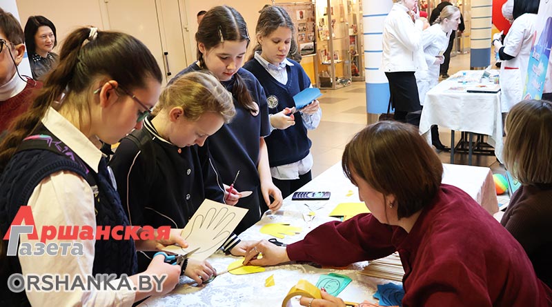 Внутри Ледовой арены работали интерактивные площадки, которые организовали учебные заведения, предприятия и учреждения социальной сферы Оршанщины.