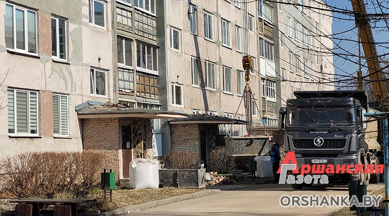 Силами ремонтно-строительного цеха КУП «Оршакомхоз» капитально ремонтируется жилой пятиэтажный дом по ул. Бориса Хигрина, 37.
