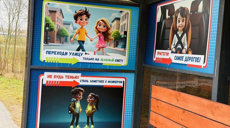 Остановка, стилизованная тематическими баннерами по безопасности дорожного движения появилась в Орше на улице Могилёвской в одном из самых крупных микрорайонов рядом с поликлиникой № 6.
