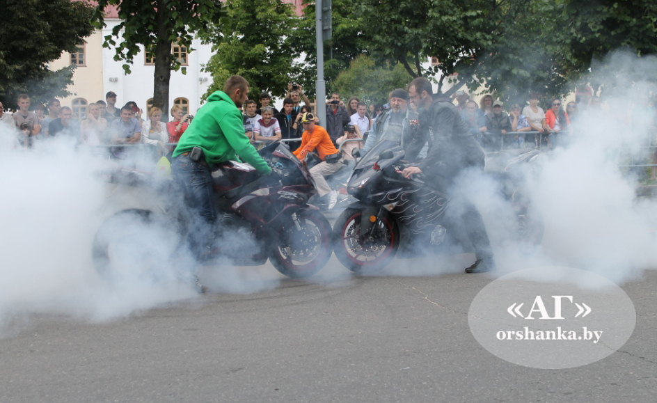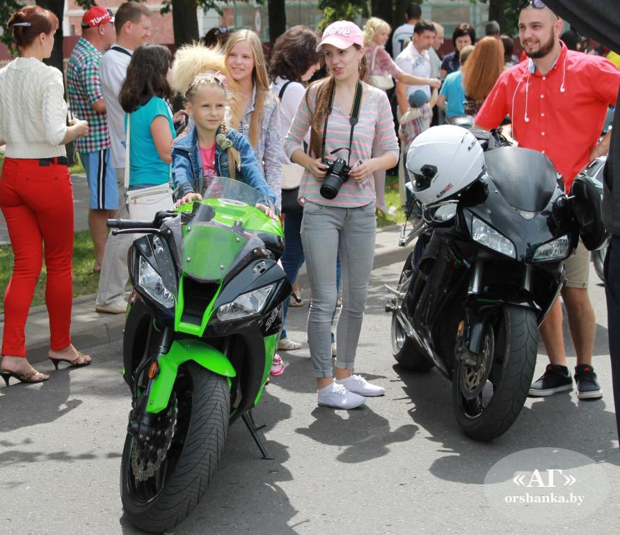 Около 13.00 оршанские байкеры устроили показательное выступление и позволили сделать фото на своих мотоциклах всем желающим.