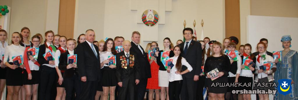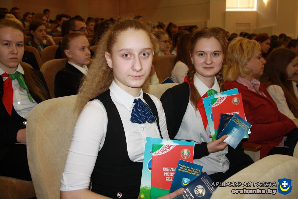 38 юношей и девушек, достигших 14-летнего возраста, – победители предметных олимпиад, отличники учебы, призеры различных фестивалей и конкурсов, активисты БРСМ и спортсмены, свой главный документ получили из рук председателя Оршанского райисполкома Николая Лисовского, председателя Оршанского районного Совета депутатов Станислава Кошкина, члена Совета Республики Национального собрания Республики Беларусь Владимира Плыткевича, ветерана Великой Отечественной войны Михаила Прокофьевича Рощинского, начальника отделения по гражданству и миграции отдела внутренних дел Натальи Руклинской, исполняющего обязанности первого секретаря Оршанского районного комитета общественного объединения «Белорусский республиканский союз молодежи» Марии Столяровой.