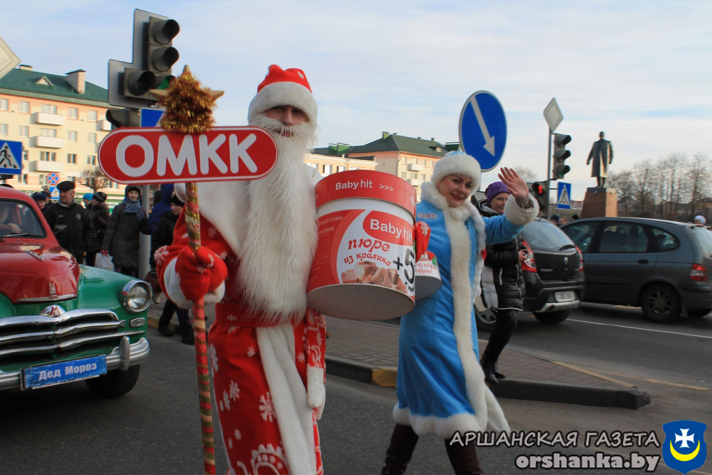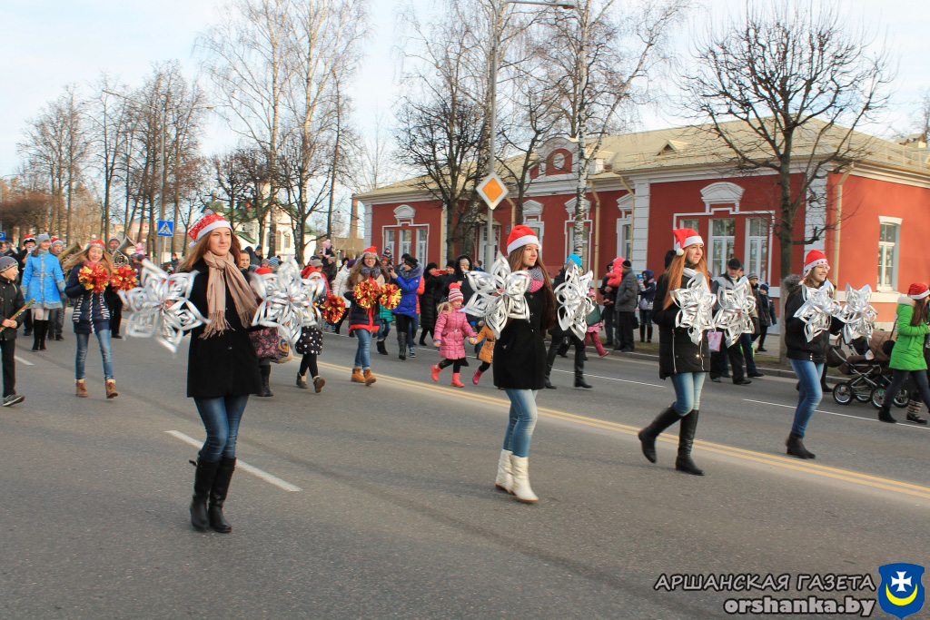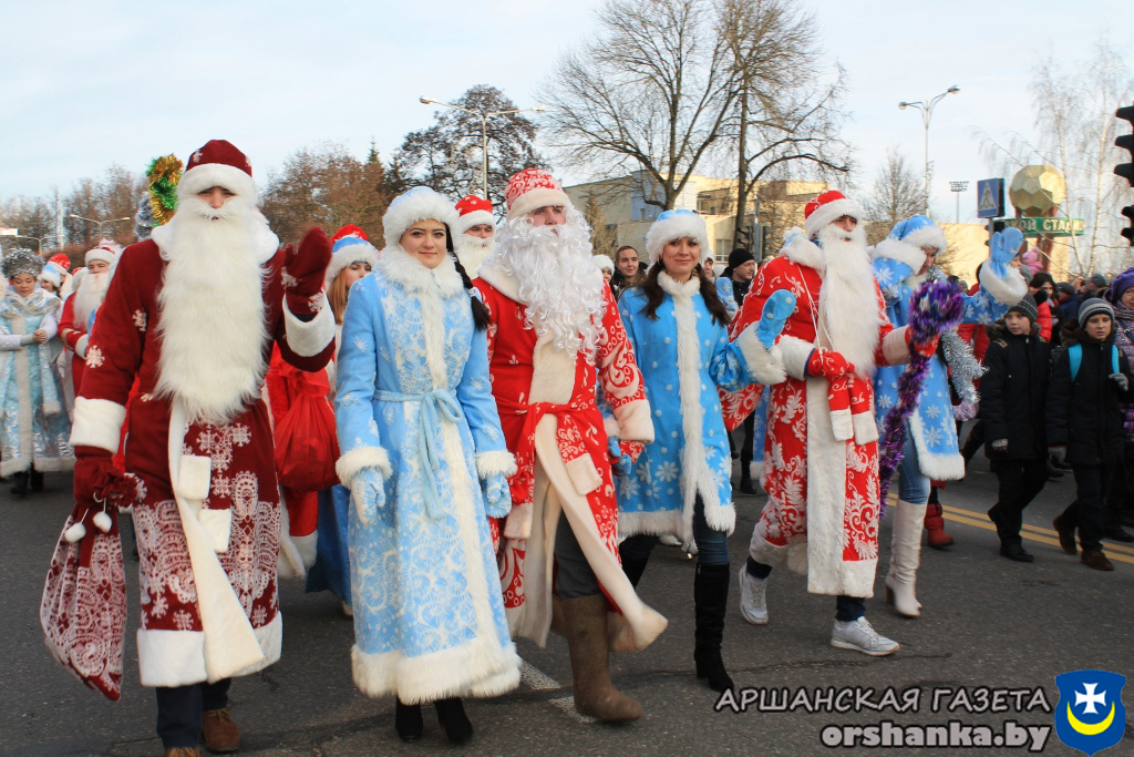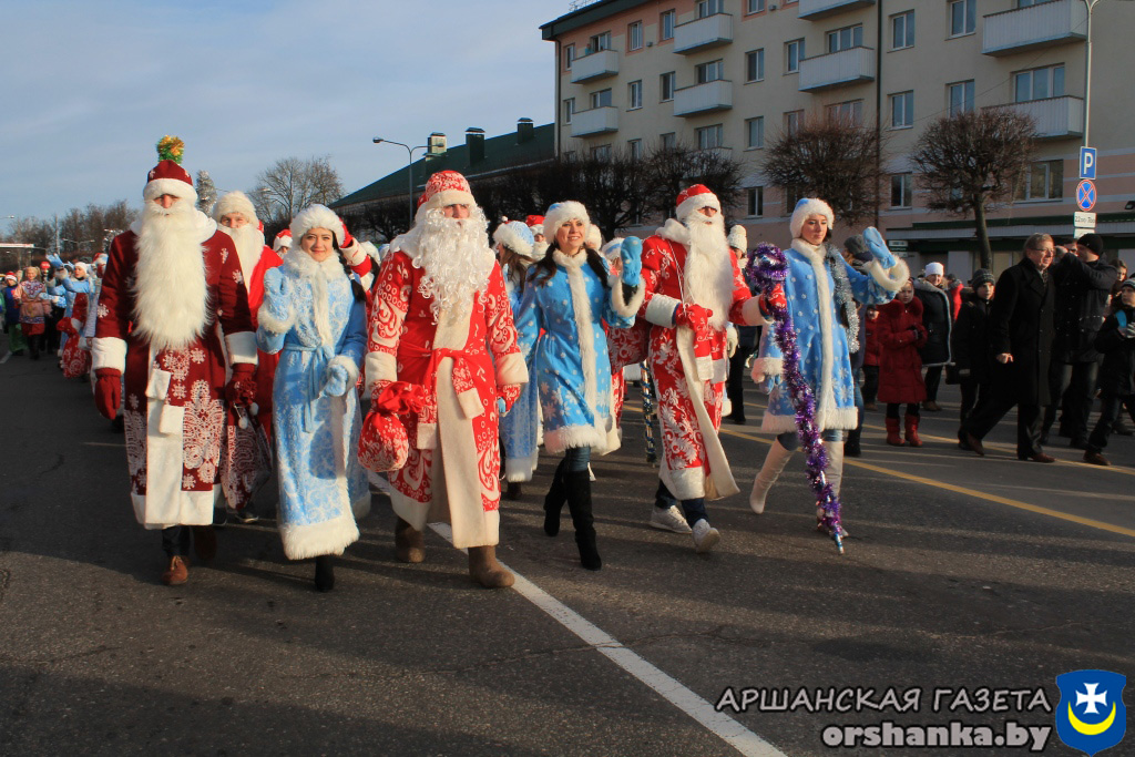 Новогоднее настроение к оршанцам приходит вместе с карнавалом Дедов Морозов. В этом году 25 декабря небесная канцелярия подарила жителям района весеннюю погоду. Глядя на ярко-голубое небо, украшенное причудливым кружевом облаков, можно было подумать, что за окном апрель. Но стоило оказаться в праздничный полдень на улице Ленина – и сразу чувствовалось приближение самого волшебного праздника в году.