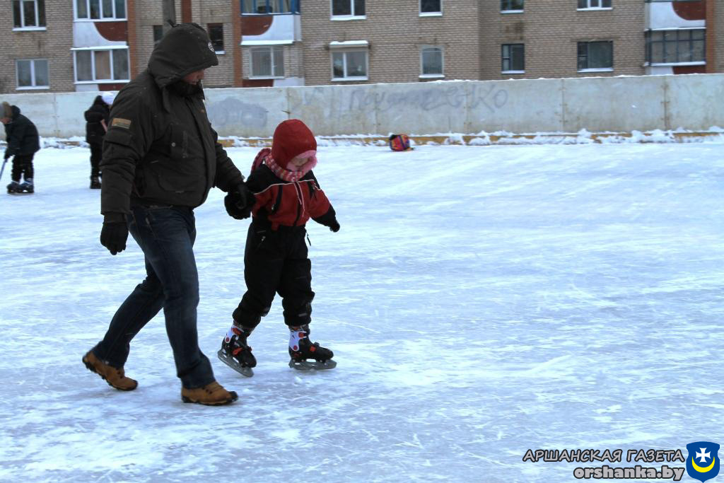 Не пустует и хоккейная коробка возле средней школы №6. Лед расчищен, и на нем хватает места сразу для нескольких небольших компаний: мальчишки осваивают клюшки и шайбы, а кто-то в это время делает свои первые шаги на коньках. Рядом довольно крутая горка, с которой, ликуя, катятся румяные девчонки.