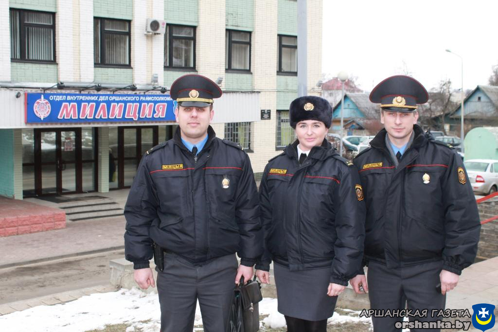 Архив 99 лет белорусской милиции исполняется 4 марта 04.03.2016 5879 orshanka Комментариев нет Сотрудники Оршанского РОВД — участковый инспектор Дмитрий Гузов, оперуполномоченные Виктория Машкова и Андрей Сосновский Торжественное мероприятие и праздничный концерт, посвященные Дню белорусской милиции, состоятся 4 марта в 15.00 в Доме культуры железнодорожников.