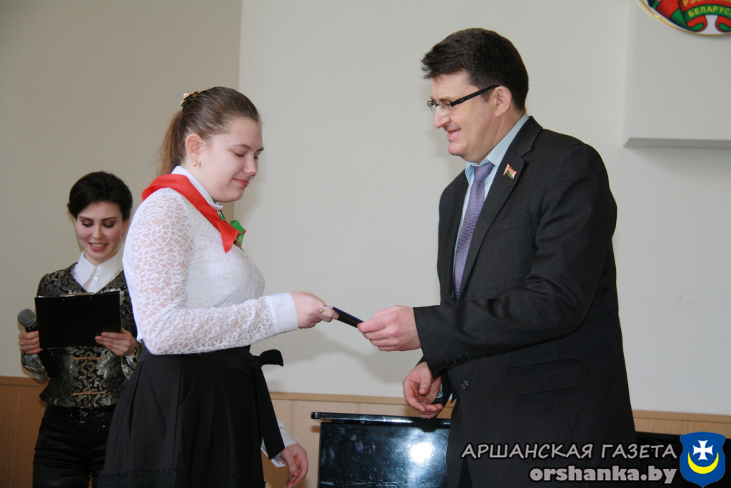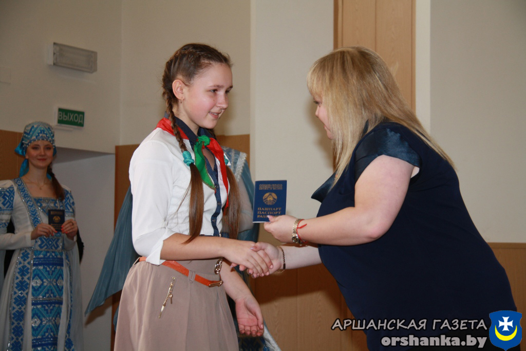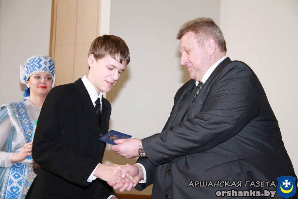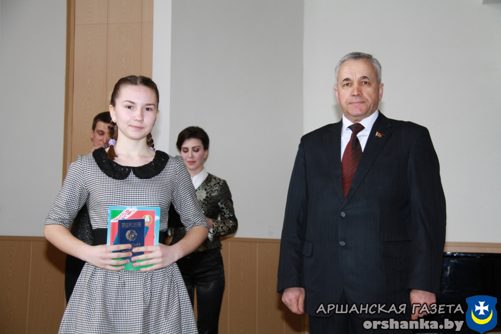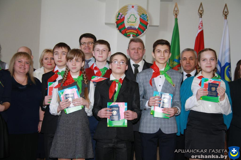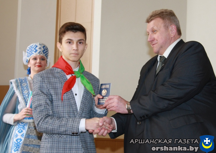 32 юноши и девушки, достигшие 14-летнего возраста, – победители предметных олимпиад, отличники учебы, призеры различных фестивалей и конкурсов, активисты БРСМ и спортсмены свой главный документ получили из рук председателя Оршанского райисполкома Николая Лисовского, председателя Оршанского районного Совета депутатов Станислава Кошкина, члена Совета Республики Национального собрания Республики Беларусь Владимира Плыткевича, начальника отделения по гражданству и миграции отдела внутренних дел Александра Кожара, первого секретаря Оршанского районного комитета общественного объединения «Белорусский республиканский союз молодежи» Марии Шматовой.