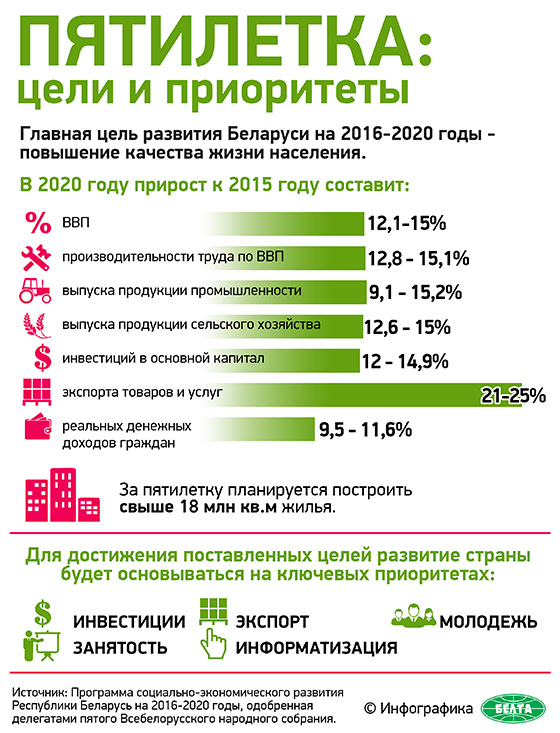 «Одобрить основные положения Программы социально-экономического развития Республики Беларусь на 2016-2020 годы и поддержать ее главную цель — повышение качества жизни населения на основе роста конкурентоспособности экономики, привлечения инвестиций и инновационного развития», — сказано в резолюции.
