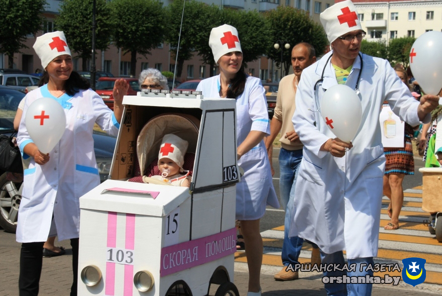 Среди участников парада можно было увидеть представителей важных профессий, например, врачей, спасателей, железнодорожников, героев мультфильмов, сказочные домики, цветочные поляны.