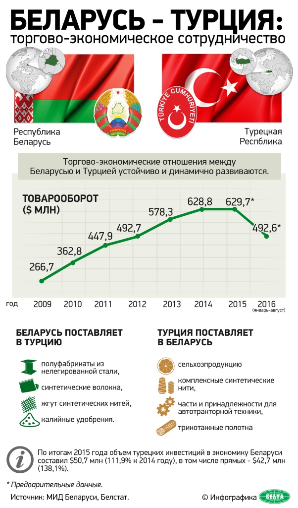 Александр Лукашенко и Реджеп Тайип Эрдоган приняли участие в белорусско-турецком бизнес-форуме, проведенном Белорусской торгово-промышленной палатой совместно с Советом по внешнеэкономическим связям Турции (DEIK). На мероприятии рассмотрены перспективные направления развития двустороннего торгово-экономического и инвестиционного сотрудничества. Кроме того, в Минске с участием лидеров двух стран прошла церемония торжественного открытия Соборной мечети.