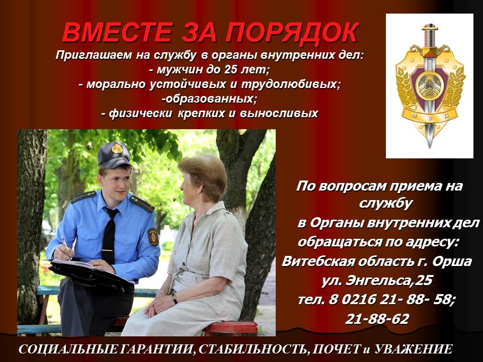 Отдел внутренних дел Оршанского райисполкома приглашает на службу в органы внутренних дел: