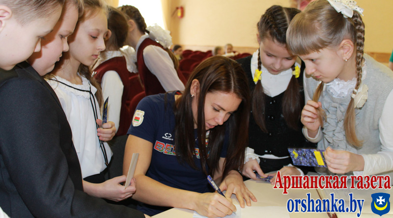 Залу запоўнілі гуллівыя хлопчыкі і дзяўчынкі. Многія добра падрыхтаваліся – трымаюць у руках фота і маюць вялікую надзею на аўтограф. І гэта не дзіва. Бо на сустрэчу з імі завітала тая самая Аліна Талай – спартсменка з аршанскімі каранямі, імя якой вядома ўжо ўсяму свету. Сустрэча стала магчымай дзякуючы праекту “Чытаем па-беларуску з velcom”.
