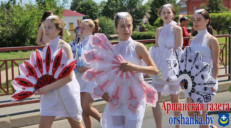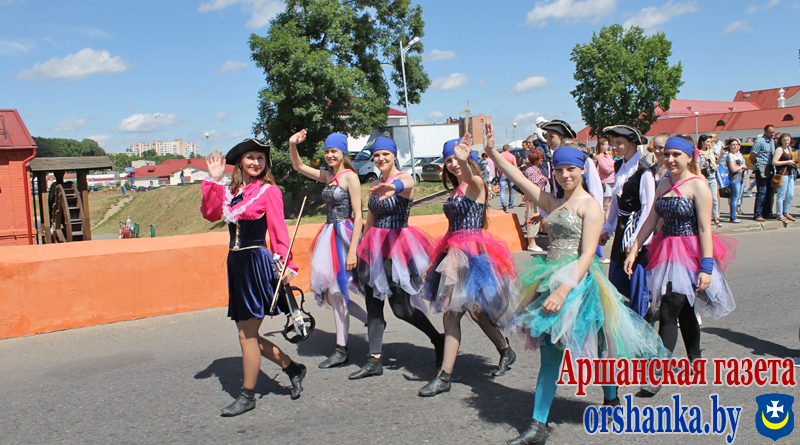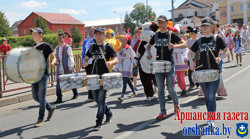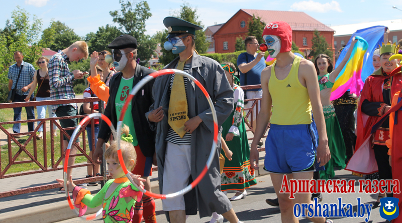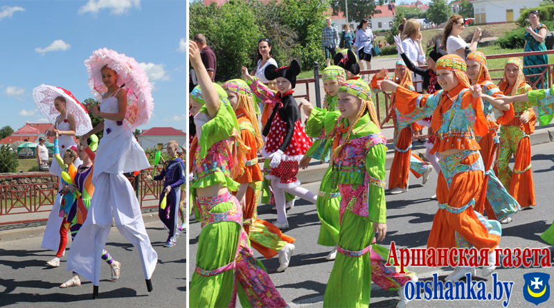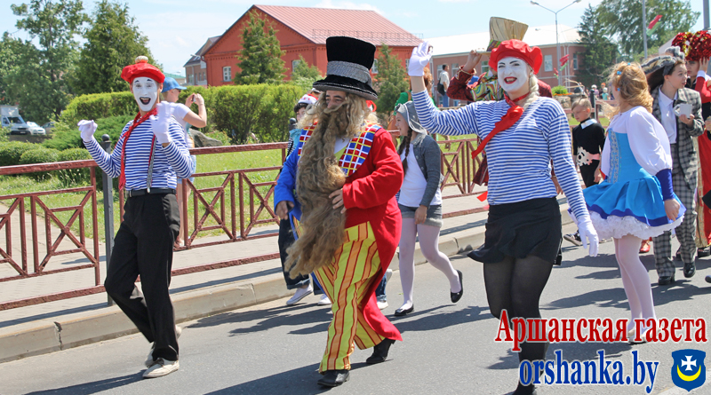 В субботу по улицам города прошел необычный парад. В колонне – сплошь артисты в ярких костюмах. Первое в истории Орши праздничное шествие уличных театров началось у музея «Мельница».
