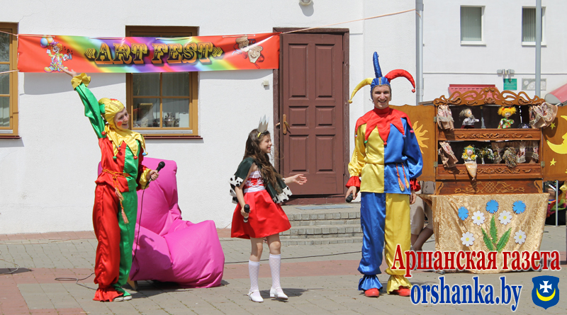 Разноцветная компания покрасовалась перед горожанами, сделав круг по мосту через Оршицу, и вернулась на площадку «Art Fest» у Дома ремёсел. Здесь каждый театр представил зрителям свою программу.