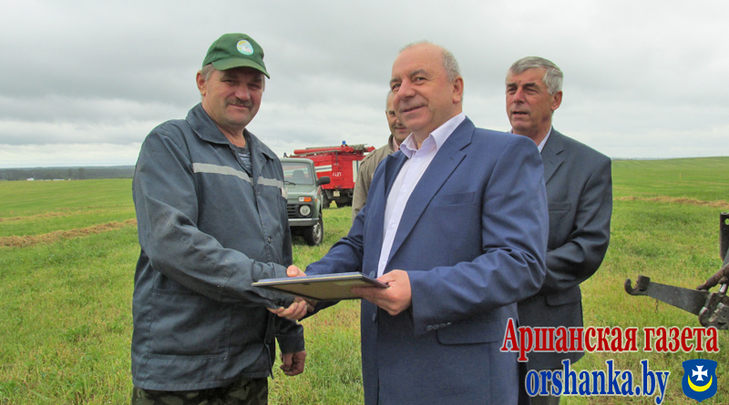 Юрий Аркадьевич первым в области на кормоуборочном комбайне «Yaguar-870» измельчил 5000 тонн зеленой массы первого укоса. Прямо в поле его приехал поздравить председатель Витебской областной организации профсоюза работников агропромышленного комплекса Виктор Гуторов. За достижение высоких показателей на заготовке кормов он вручил Ю. Почетовскому диплом и денежную премию. Слова благодарности за труд победителю соревнования, который на данный момент измельчил уже более 10 тысяч тонн зеленой массы, а также всем механизаторам сельскохозяйственного предприятия, занятым на заготовке кормов, высказали директор ОАО «Маяк Высокое» Григорий Фалько и председатель Оршанской районной организации профсоюза работников АПК Олег Макаревич.