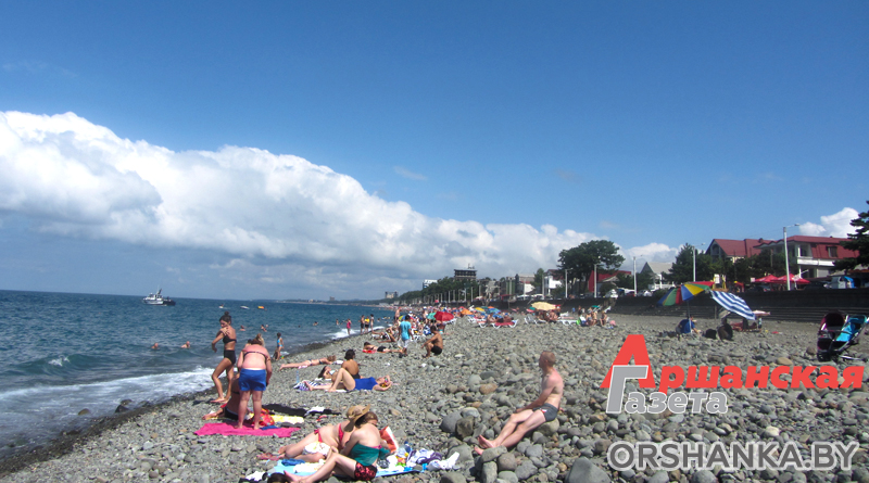 …Впервые идем на городской пляж. Отдыхающих у воды с первого взгляда кажется не так и много, расположиться можно в любом понравившемся месте. Единственный минус – пляж галечный, а из-за больших камней не всегда удобно спускаться в воду. Но это обстоятельство не имеет никакого значения, когда ты приехал просто насладиться морем, солнцем и хорошей летней погодой.