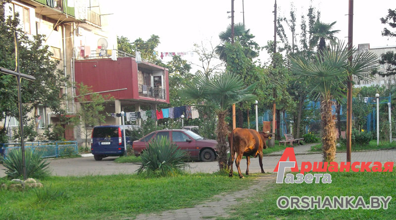 Как оказалось, это своего рода национальная особенность грузин. Они привыкли сушить полотенца, простыни, рубашки буквально повсюду. Удивило и то, что во дворах многоэтажных домов, да и просто по улицам преспокойно гуляют коровы. Если говорить о благоустройстве, то его практически нет, впрочем, как и общей архитектурной композиции домов, дворов, улиц. Каждый, как позволит его фантазия, делает всевозможные пристройки, «выдвигается вперед», как это здесь принято называть, из-за чего многие дома выглядят несуразно.