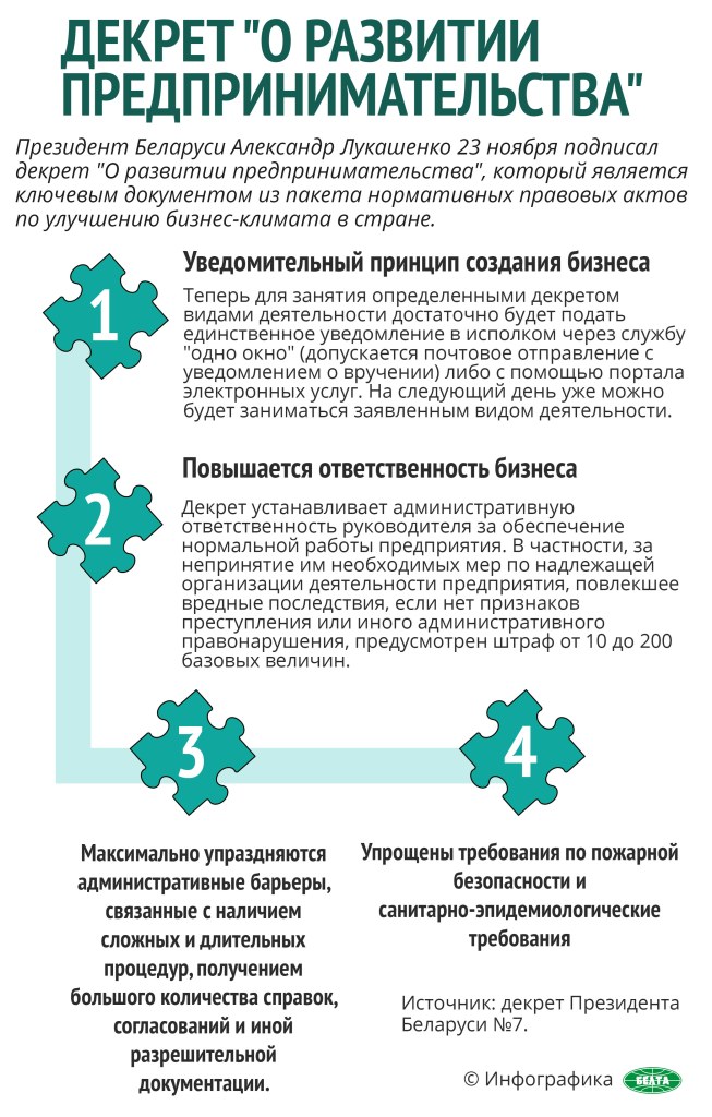 Декрет призван придать необходимый импульс развитию предпринимательской инициативы, стимулировать деловую активность граждан и в целом улучшить инвестиционный климат в стране.