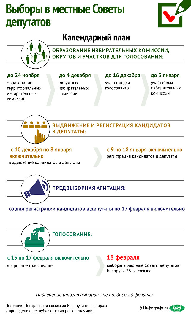 Местные выборы пройдут в Беларуси 18 февраля, проголосовать досрочно можно будет с 13 по 17 февраля.