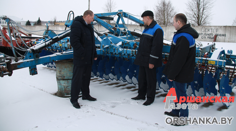 «Как только установятся благоприятные погодные условия, выведем в поля энергонасыщенную технику. Подготовили к весеннему севу плуги и сеялки. Для обработки почвы применим дискаторы», – рассказывает главный инженер сельхозпредприятия Дмитрий Дылько. Вместе с директором ОАО «Маяк Высокое» Олегом Макаревичем и первым заместителем начальника управления сельского хозяйства и продовольствия Оршанского райисполкома Сергеем Шацким обходим мехдвор. «Наши ремонтники сработали быстро и слаженно, техника готова к работе, – отмечает Олег Аркадьевич. – Последним отремонтировали почвообрабатывающий и посевной агрегат «Amazone» – ждали, пока привезут дорогостоящие запчасти к импортной технике».