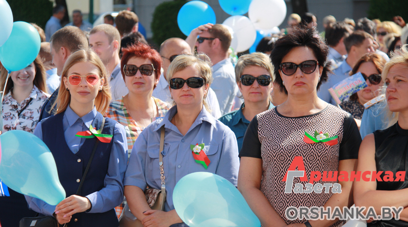 Председатель Оршанского райисполкома Александр Позняк поздравил оршанцев и выразил искреннюю благодарность всем труженикам, ветеранам и молодежи за вклад в социально-экономическое развитие города, за честный труд на благо общества. Горожане выпустили в небо белые и голубые шары как символ мира и единства.