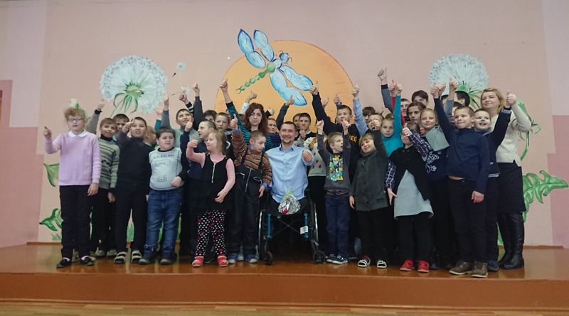 С ребятами СШ № 3 и вспомогательной школы № 24 встретился предприниматель, мотивационный тренер, мастер спорта, член параолимпийской белорусской сборной по плаванию Алексей Талай.