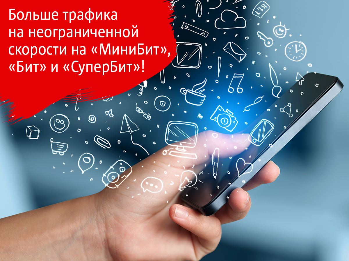 Новые возможности для пользователей линейки «Безлимиты». Оператор увеличивает объем интернет-трафика на неограниченной скорости на услугах «МиниБит», «Бит» и «СуперБит».