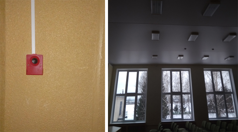 — установка дымовых датчиков системы пожарной сигнализации выполнена таким образом (в ходе ремонтных работ), что не обеспечивается контроль каждой точки помещение актового зала;