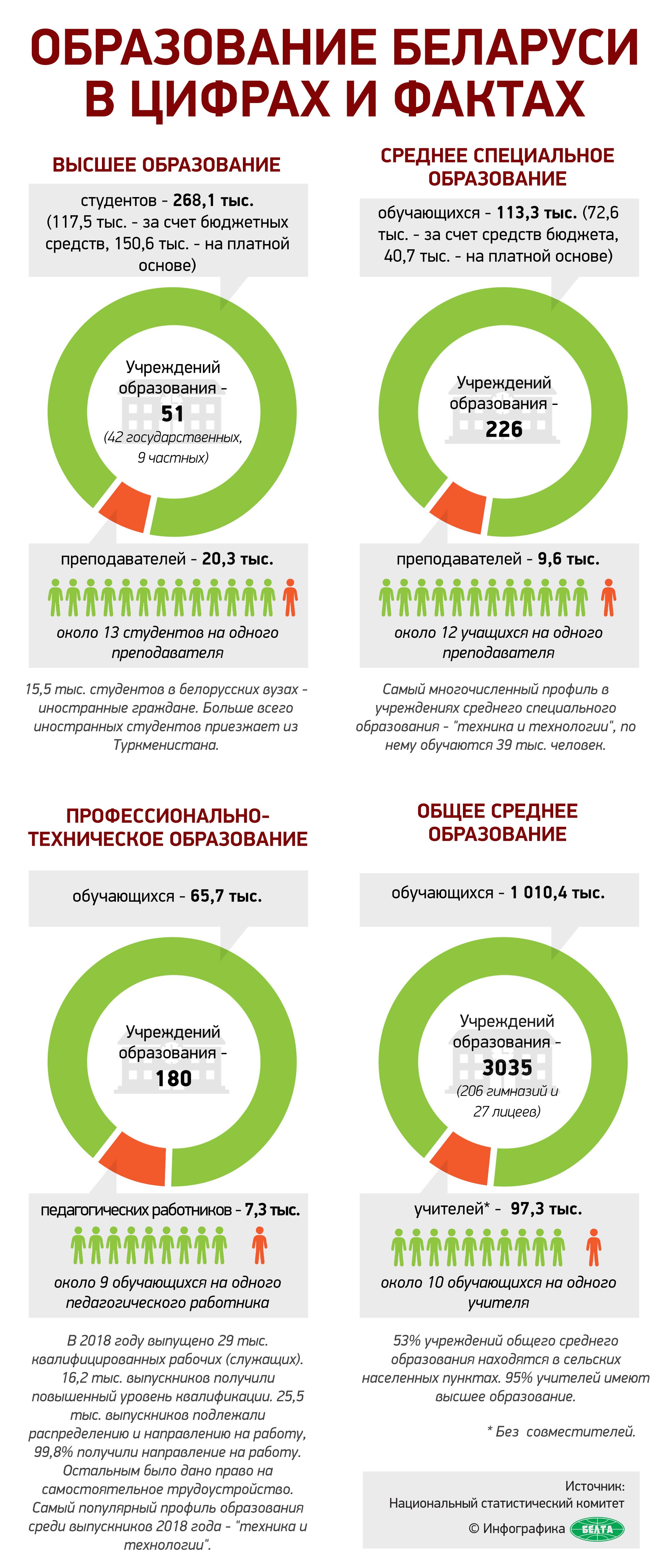 Глава государства также потребовал определиться с необходимым количеством обучаемых в высших учебных заведениях. Однако пояснил, что это поручение не распространяется на экспорт образовательных услуг, который приносит стране немалые деньги. Только по линии Министерства образования удалось заработать $35 млн. «Система белорусского образования очень востребована. По-моему, 108 стран обучаются в Беларуси, около 25 тысяч человек. Это здорово, – отметил он. – А нам надо столько выпустить из вузов студентов, сколько нужно для нашей экономики и жизни».