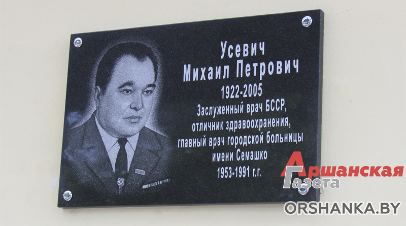 В День города у центрального входа в здание больницы № 1 им. Семашко торжественно открыли мемориальную доску врачу-хирургу высшей категории, отличнику здравоохранения, заслуженному врачу БССР Михаилу Петровичу Усевичу.
