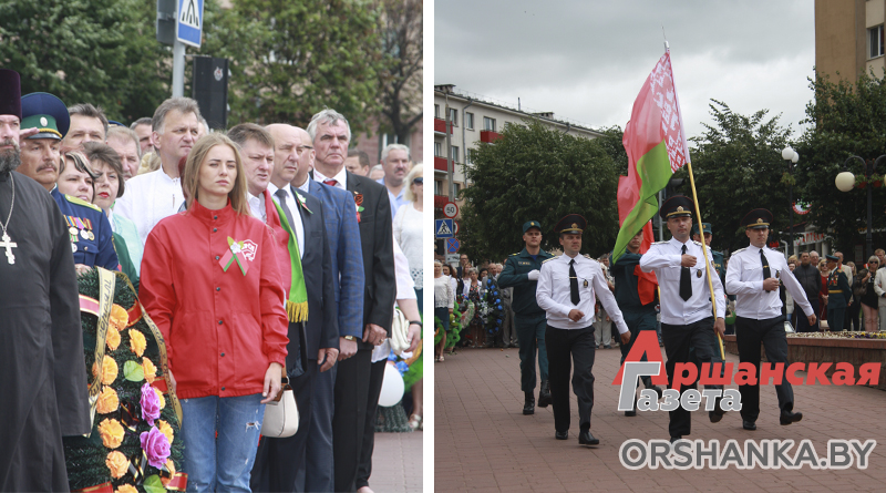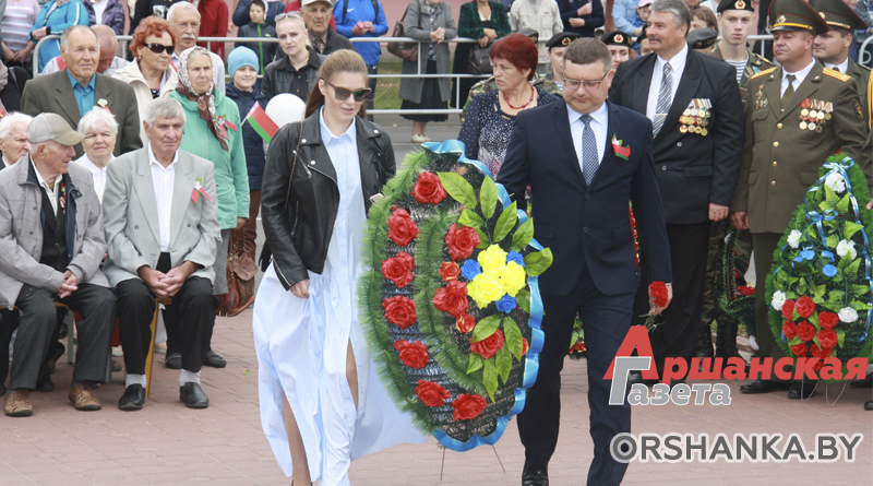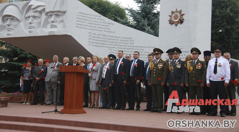 – Этот день по праву является особенным в истории нашего государства. Оршанцы, как и все белорусы, достойно выдержали нашествие немецко-фашистских захватчиков. Уже с первого дня оккупации – 16 июля 1941 года – на Оршанщине была образована подпольная организация, в которой действовало более 80 подпольно-диверсионных групп, насчитывавших свыше 1000 участников. В начале Великой Отечественной войны в боях под Оршей впервые были использованы реактивные установки БМ-13 — легендарные ”Катюши” под командованием капитана Ивана Андреевича Флёрова.
