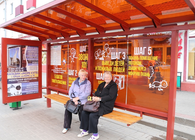 В центре Орши на одной из самых оживленных улиц — Мира — появились две остановки общественного транспорта с правилами от МЧС. Теперь жители города и района, пользуясь общественным транспортом, смогут вспомнить пять шагов спасения. Также эти остановки вызывают интерес у прохожих и водителей, напоминая о важности соблюдения правил пожарной безопасности и действиях в случае возникновения чрезвычайной ситуации.