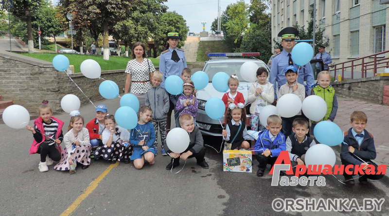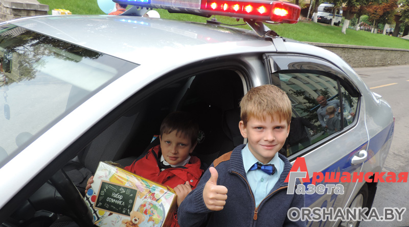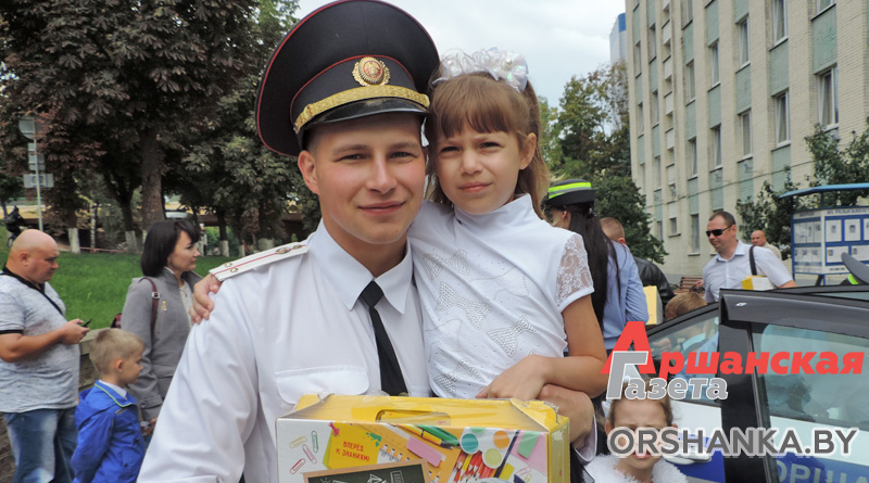 Сегодня сотрудники милиции, а по совместительству родители первоклашек, пришли на службу вместе с детьми. У входа в управление внутренних дел Оршанского райисполкома их ждал сюрприз.