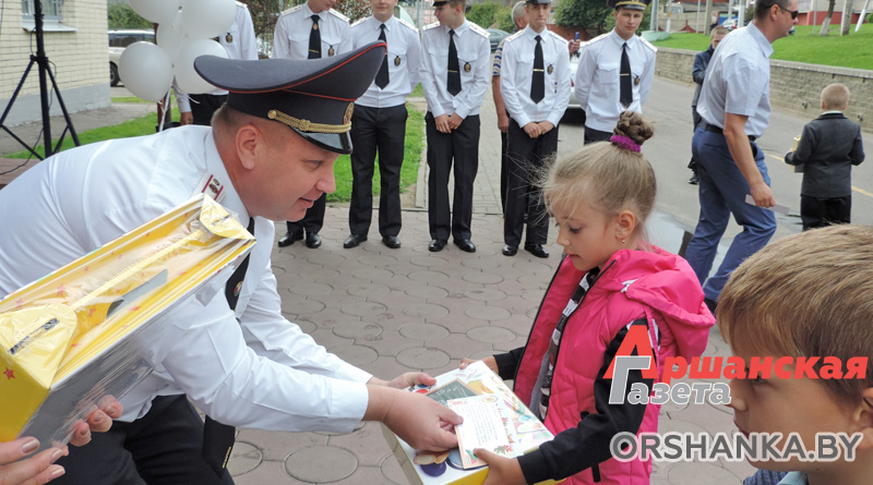 Начальник управления внутренних дел Оршанского райисполкома Сергей Барвянков поздравил детей и родителей с приближающимся Днем знаний. Он пожелал, чтобы учебный год был наполнен интересными событиями, достижениями и вручил каждому ребенку «Набор отличника», который поможет осваивать школьные премудрости: «Пусть школьные знания даются легко, рядом с вами будут верные друзья, а ваши поступки радуют учителей и родителей. Мы готовы защищать вас и оберегать ваше безоблачное детство. Но и вы не ставьте себя в опасные ситуации, будьте бдительны на дорогах, соблюдайте пожарную безопасность».