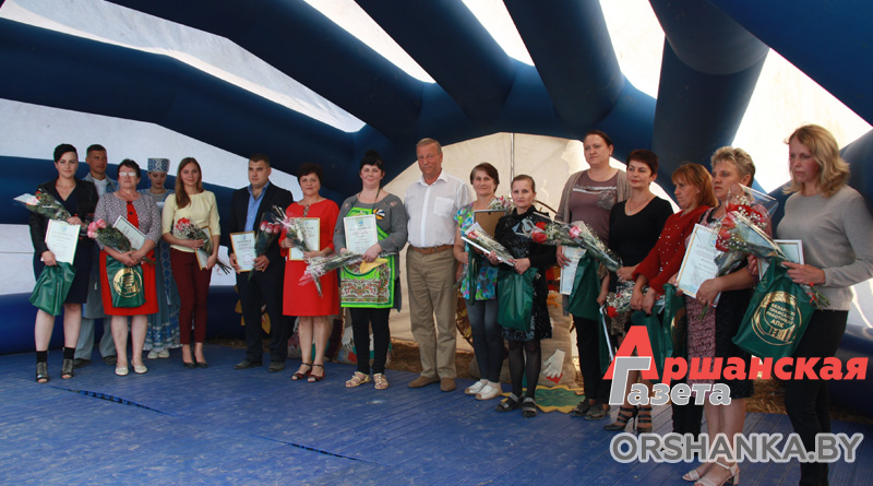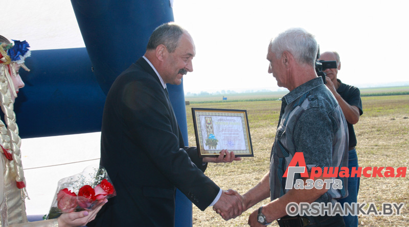 Хлебаробаў вітаў старшыня Аршанскага райвыканкама Ігар Ісачанка. Ён узнагародзіў Ганаровымі граматамі вядучага агранома сельскагаспадарчага філіяла “СГЦ “Задняпроўскі” Вольгу Бязлюдаву і галоўнага інжынера ГП “Межава-Агра” Аляксандра Мяфодава.