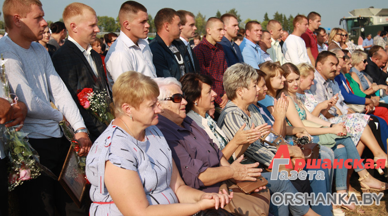 Павіншаваць аграрыяў з завяршэннем жніва прыехалі шаноўныя госці: старшыня Віцебскага аблвыканкама Мікалай Шарснёў, намеснік міністра сельскай гаспадаркі і харчавання Уладзімір Гракун, старшыня рэспубліканскага прафсаюза работнікаў аграпрамысловага комплексу Мікалай Лабушаў і іншыя.