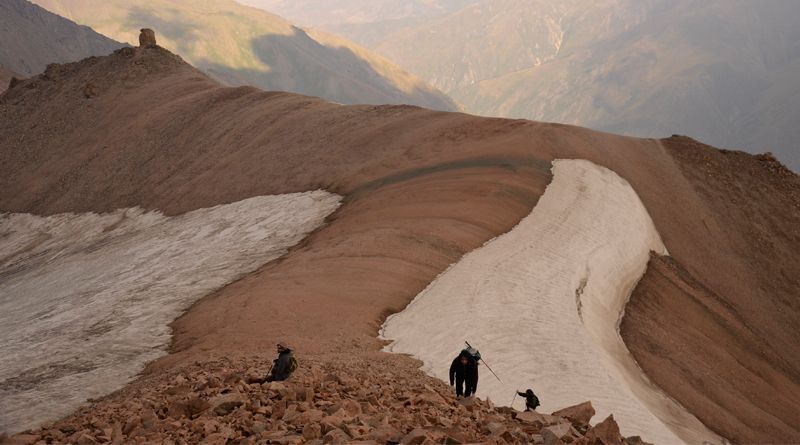 Мы шли между высокими горными пиками длинной цепочкой через живописные долины сначала с зелеными пастбищами, журчащими источниками, а потом все больше с каменистыми подъемами. Встречались на нашем пути и целые семейства горных козликов. На высоте 4 000 м нас ожидал горный ледник. Оттуда до пика оставалось всего 250 метров, но каких?! Идти нужно было по каменистому узкому горному хребту. Вот где дух захватывало! И не только от того, что на такой высоте тяжело дышать… Откуда только брались силы и смелость, удивлялись сами. Второе дыхание у нас открывалось не раз.
